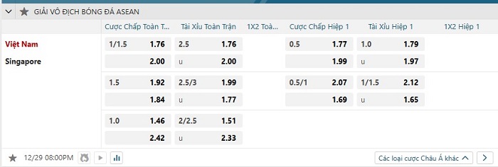 Soi kèo châu Á, kèo chấp Việt Nam vs Singapore