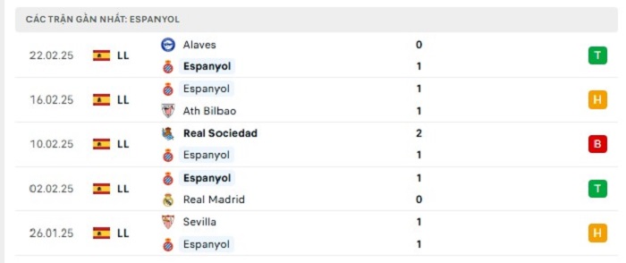 Bảng  bóng đá trận đấu Villarreal vs Espanyol