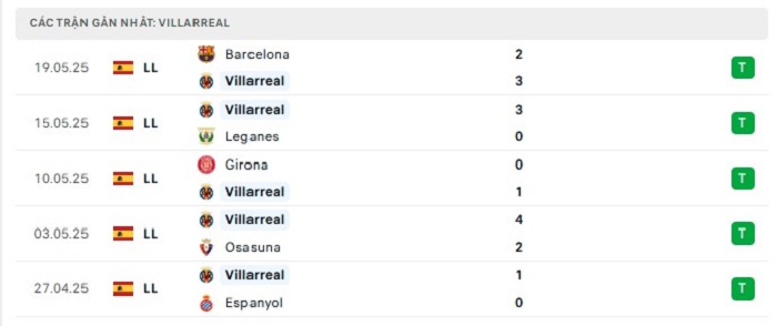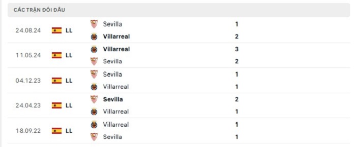 Phong độ gần đây Villarreal vs Sevilla