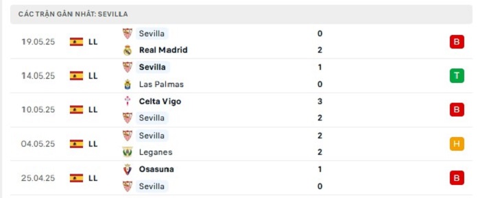 - Phong độ Sevilla