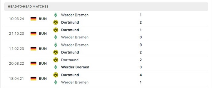 Những lần gặp nhau giữa Werder Bremen và Borussia Dortmund vốn cũng đã thường xuyên có được tỷ lệ ghi bàn tương đối cao trong trận đấu. Thống kê có thể thấy được có tới 8 trong 10 trận gặp nhau có từ 3 bàn thắng ghi được trở lên, trong đó có 6 trận đấu có khả năng xuất hiện tỷ số cao với mốc từ 4 bàn thắng ghi được cho cả hai đội. Chính bởi lý do này mà có thể tiếp tục đặt niềm tin vào một trận đấu bùng nổ về mặt tỷ số của cả hai đội ở lần gặp nhau này.