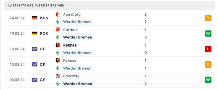 - Phong độ Werder Bremen