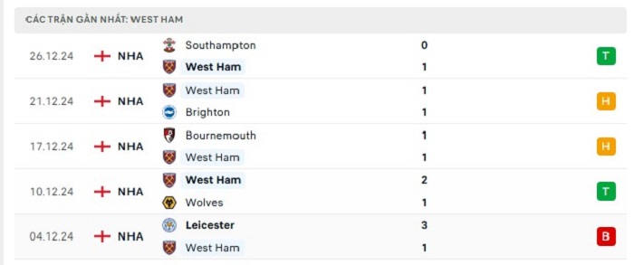- Phong độ West Ham