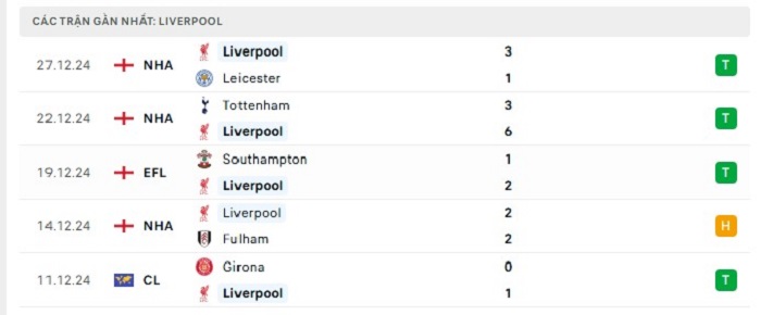 - Phong độ Liverpool