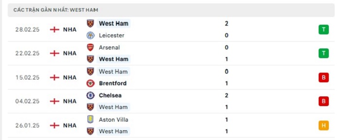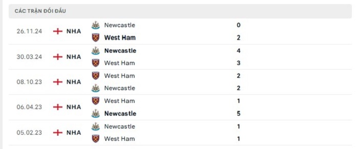 Phong độ gần đây West Ham vs Newcastle