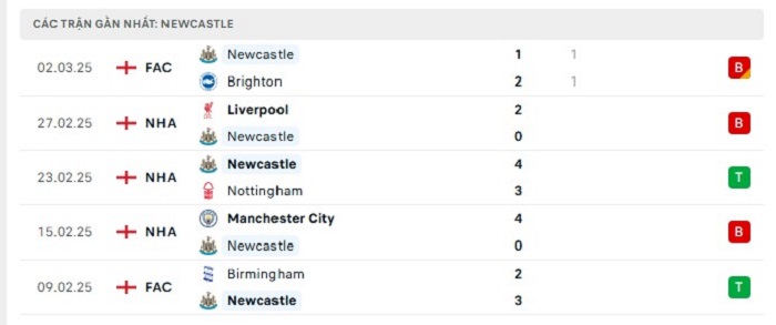 - Phong độ Newcastle