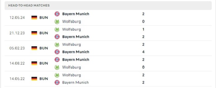Phong độ gần đây Wolfsburg vs Bayern Munich
