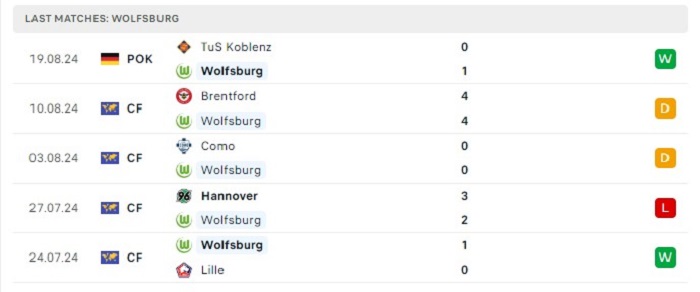 - Phong độ Wolfsburg
