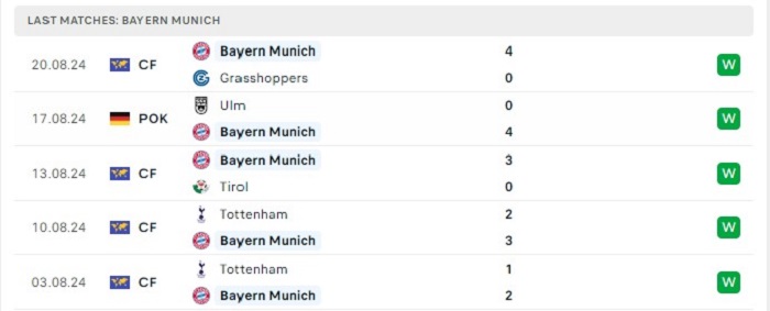 - Phong độ Bayern Munich