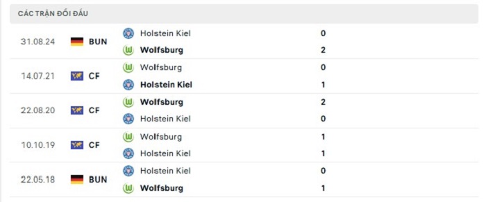 Bảng bóng đá trận đấu Wolfsburg vs Holstein Kiel