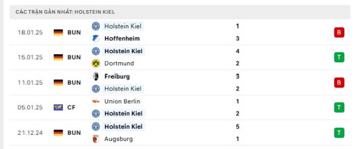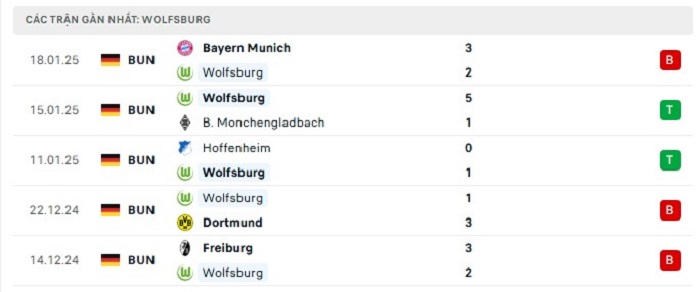 Phong độ gần đây Wolfsburg vs Holstein Kiel