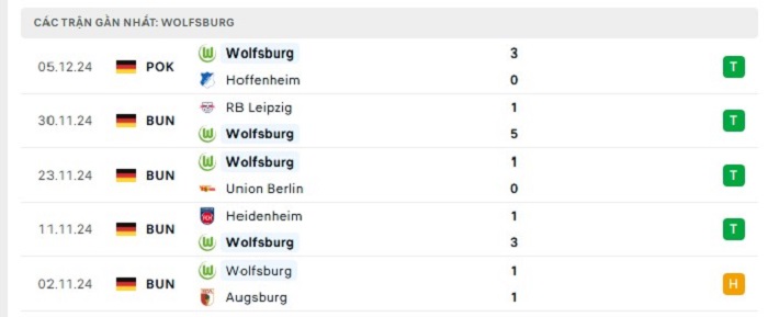 - Phong độ Wolfsburg