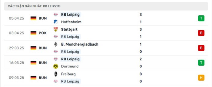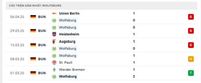 Phong độ gần đây Wolfsburg vs RB Leipzig