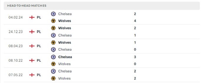 Có tới 4 trong 5 lần gặp nhau gần đây nhất giữa hai đội có từ 3 bàn thắng ghi được trở lên, điều này ít nhiều cũng đã thấy được lối chơi phóng thoáng mà Wolverhampton và Chelsea đã tạo ra được trong quá khứ. Trong đó kết quả hoà 2-2 của hai đội cũng đã từng diễn ra và với thế trận hiện tại thì khả năng tỷ số trận đấu có thể lặp lại được cũng rất khả thi khi mà Wolverhampton sẽ thể hiện quyết tâm cao cho việc có điểm trên sân nhà của mình.