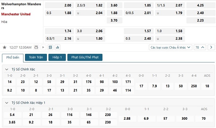 Soi kèo tỷ số Wolves vs Manchester United